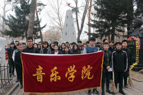在学校团委的组织下,学生会、学生社团联合会、青年志愿者联合会、国旗护卫队、艺术团、礼仪队等百余名学子参加了“缅怀先烈 铭记历史”祭扫烈士墓活动。