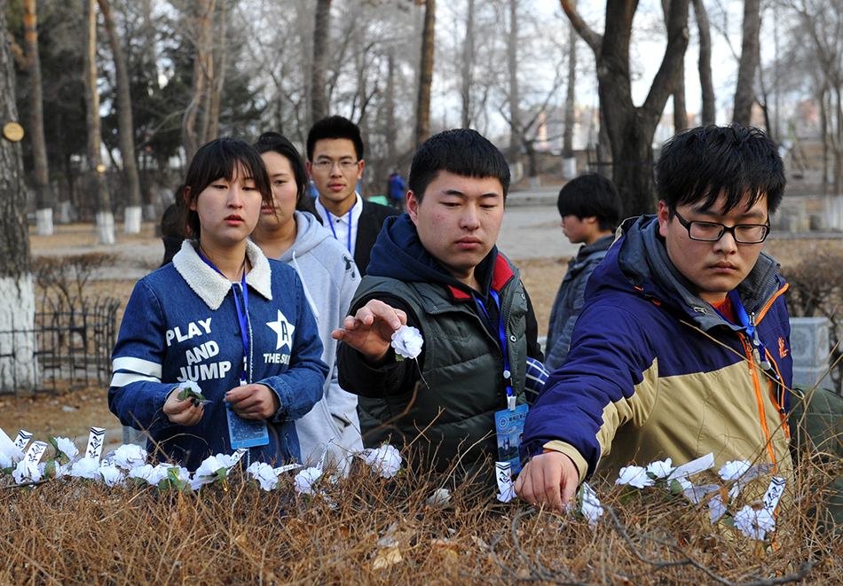 本网讯(学生记者 朱诗韵 路董萌 李妍 摄影 刘思佳 葛艳宇 张瑞芹 王瑞雪 赵凯龙 刘帅)“清明节里祭忠魂,先烈豪气耀昆仑。但使前辈英灵在,化作细雨润人间。热血抛洒,终换得江山如画,我辈矢志,再铸光辉中华。”又是一年清明节,为悼念革命烈士,继承发扬革命传统,学校举办了主题为“缅怀先烈 铭记历史”系列活动。师生们纷纷来到王肃公园、烈士陵园等地,开展缅怀先烈清明祭扫活动。