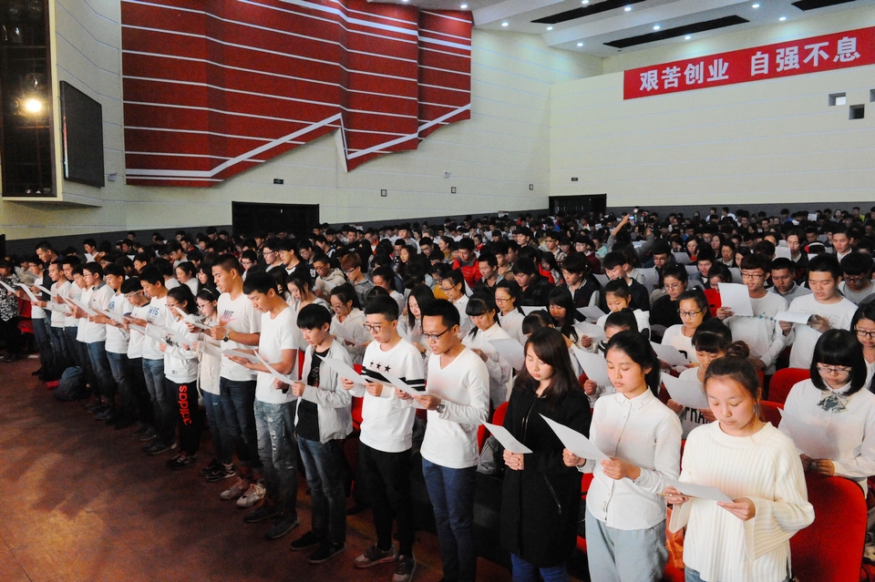 雅言传承文明,经典浸润人生。千人诵读会上,伴以优雅动听的配乐,同学们饱含深情地朗诵了《沁园春长沙》《青春中国》等思想积极向上、时代特色鲜明的经典诗文作品,通过诵读表达了对厚重历史的尊敬、对经典文化的崇尚和对伟大祖国的礼赞。一段段脍炙人口的名篇佳作,使同学们重新领会到国学经典的魅力。由国际教育学院越南籍留学生陈辉禄同学朗诵的《将进酒》赢得全场热烈掌声。近千名学生倾情齐诵《我们爱你啊 中国》将活动推向高潮,激起强烈共鸣。