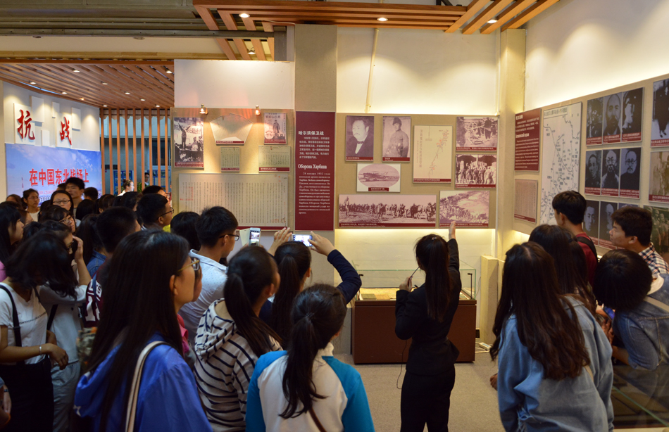 万人签名活动后,俄罗斯老战士和我校师生参观了中俄联合纪念中国人民抗日战争暨世界反法西斯战争胜利70周年特别展览。当看到展柜中展出的苏联红军军装、东北抗联使用过的行军锅、缴获日军的迫击炮等中苏联合抗日历史文物,老战士阿那托里激动不已,他说“参观展厅就是对当年抗击日本法西斯侵略历史的回顾,历史的教训决不能忘记,要居安思危,警钟长鸣。”