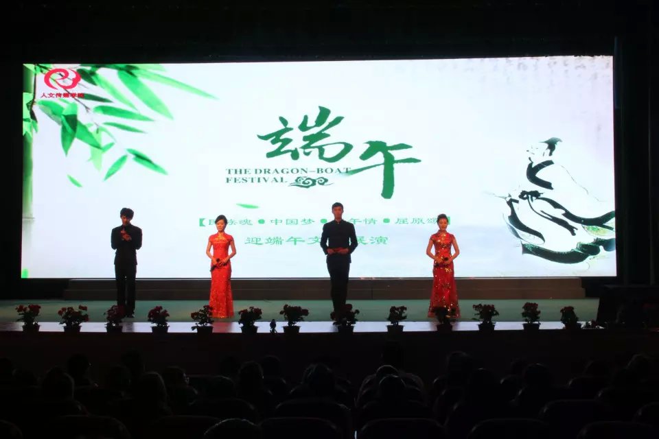 本网讯(学生记者 林琳 王玥 程小玲 摄影 田川)6月19日,由人文传媒学院主办的以“颂离骚古韵 抒爱国情怀”为主题的“民族魂·中国梦·端午情·屈原颂”迎端午文化展演在我校明德楼大礼堂隆重举行。党委副书记杨宏,副校长张焕强、车永宏,总会计师宁艳杰等相关部门负责人出席本次展演。