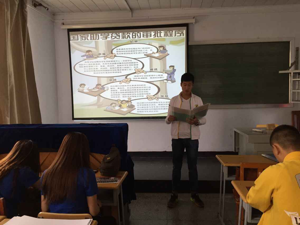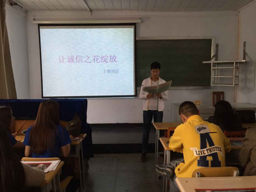 活动内容:此次以资助诚信教育为主题的班会意在使同学们更多的了解,国家助学贷款资助政策,普及征信、金融等相关知识,宣传诚实守信事迹,增强法律意识,履行国家助学贷款合同,有效地将诚信教育转化为大学生自觉的素养与行为。同时,让大家认识到诚信的重要性和培养同学们诚信的意识,并初步学会将诚信融入日常生活中的每一件小事,真正做到诚实守信。诚信,是职业道德的根本,是个人成就事业的根基。要培养诚信的良好道德品质,就要从身边的每一件小事做起。作为当代大学生,我们应该做到诚实,诚恳,实事求是,重信用,守承诺,做一个“一诺千金”的人。