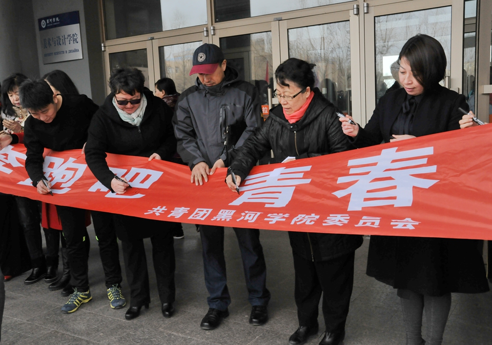本网讯(特约记者 梁云婴)4月5日,由共青团黑河学院委员会主办、黑河学院学生会承办的“走下网络、走出宿舍、走向操场”校园系列文化体育活动启动仪式在美术楼前举行。学校党委副书记杨宏出席启动仪式,学校学生工作部、教务处、团委负责人及各学院党总支书记、团总支书记与900余名学生共同参加了此次活动。