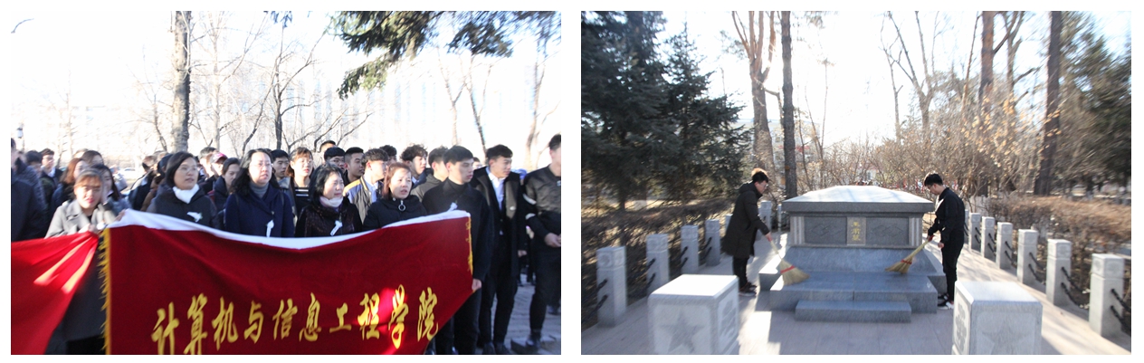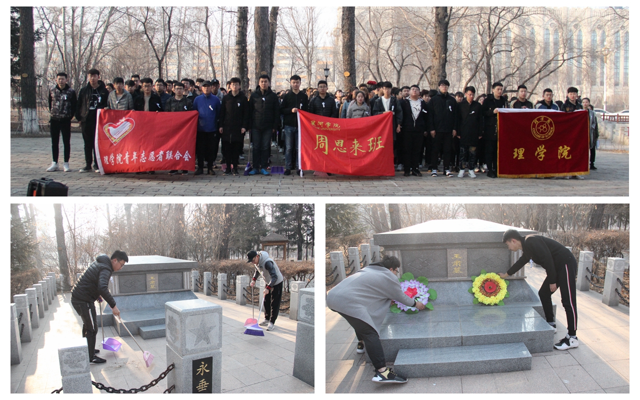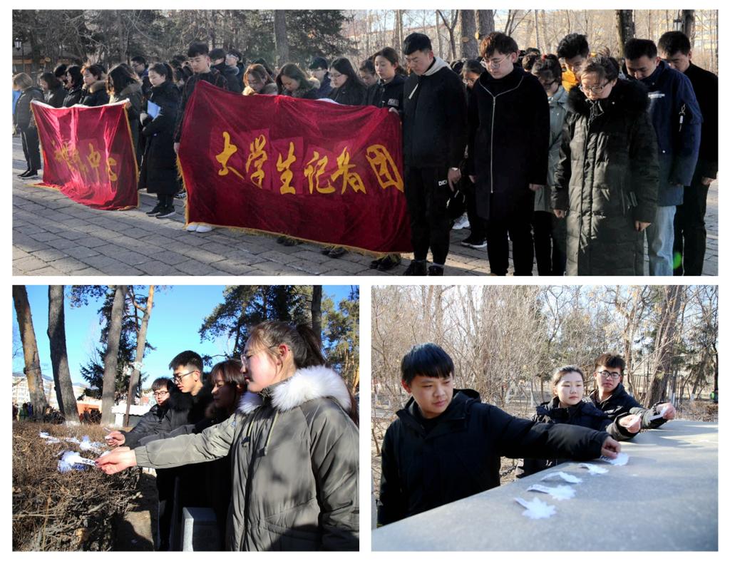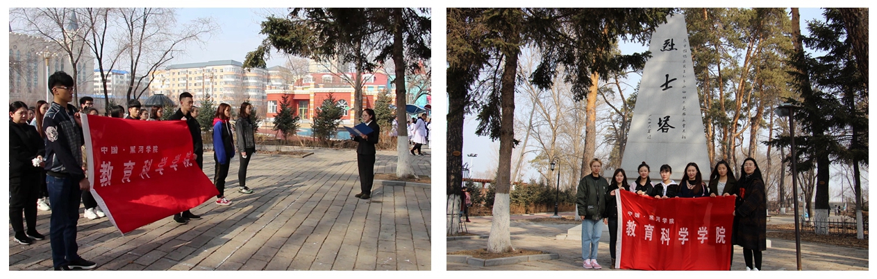 ‍4月1日,理学院师生在黑河市烈士陵园举行扫墓活动,同学们手举院旗、会旗整齐列队,向烈士敬献花圈,肃立默哀,表达对先烈的敬意和哀思。同学们纷纷表示,将牢记光荣的革命传统,珍惜来之不易的幸福生活,勤奋进取,为美好时代贡献力量。
