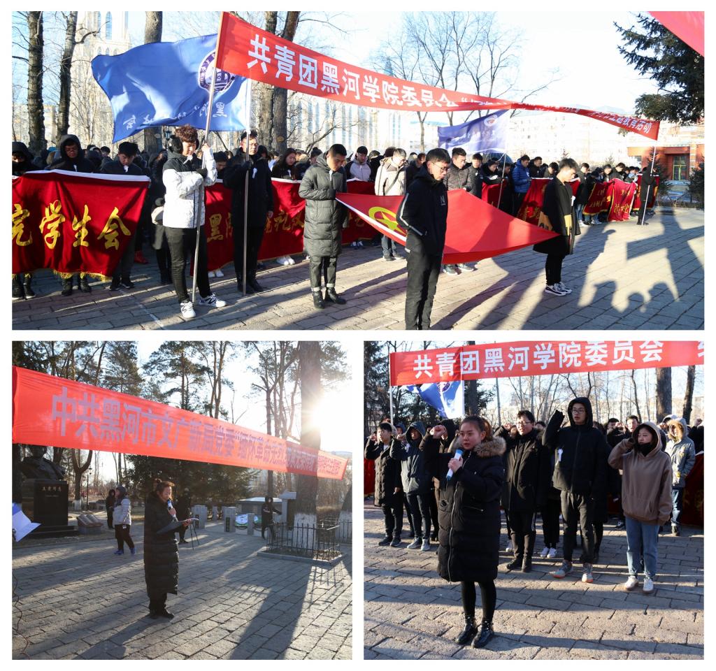 4月5日,大学生记者团、黑河学院新媒体中心成员步行前往王肃公园,举行“追寻英烈足迹 传承民族精神”主题清明祭扫活动。同学们整齐伫立在肃穆的烈士墓前,聆听革命先烈的英勇事迹,向革命英烈敬献花圈、鞠躬默哀、庄严宣誓,缅怀革命先烈不畏牺牲、无私奉献的崇高精神。