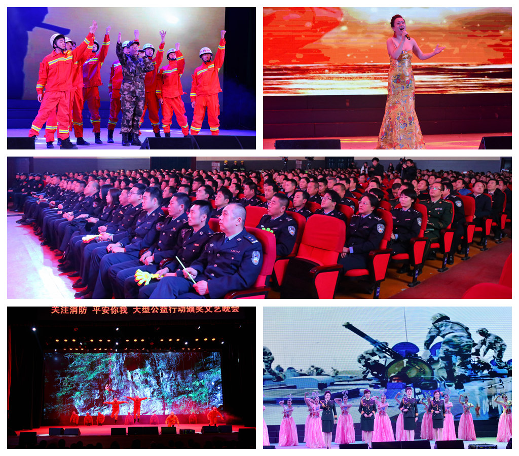晚会在黑河市公安消防支队的合唱《歌唱祖国》中拉开帷幕。舞蹈《烈火青春》跳出了消防官兵日常灭火战斗、抢险救援英勇顽强的拼搏精神;我校合唱团一曲《走向复兴》唱出了中华民族创造辉煌的坚定信念;由合作区公安消防大队精心编排的音乐情景剧《人人都是消防员》,用我们身边的故事,通过快板的形式向观众普及了消防安全基础知识;一首《火线出击》唱出了消防官兵默默无闻、甘于奉献的英雄品质;由消防官兵朗诵的我校人文传媒学院朱红岩老师创作的《丰碑》,充分展现了新时代消防官兵恪尽职守、竭诚奉献的精神;歌曲《我爱你中国》《我们不一样》《好人好梦》《妻子》将演出推向高潮;小品《誓如当初》讲述了消防队员孔凡奇的英勇事迹,消防英雄不屈不挠的精神令在场观众无不为之感动;演出在四重唱《共圆中国梦》中圆满落下帷幕。