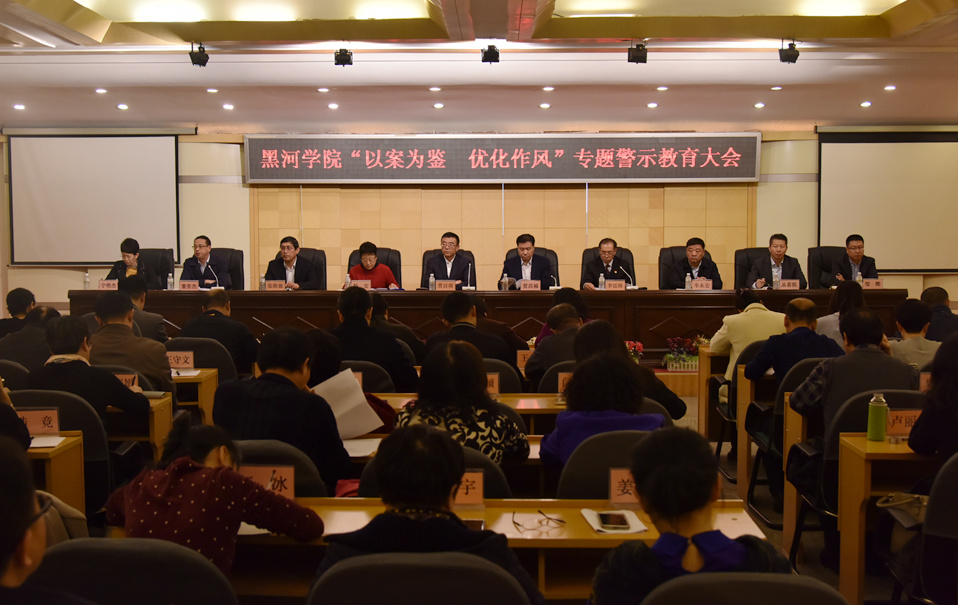 本网讯(记者 赵宇)为深入贯彻落实省直机关作风整顿暨优化发展环境警示教育大会精神,充分发挥反面案例在作风整顿中的震慑推动作用,11月1日下午,学校在明德楼五楼多功能厅召开了“以案为鉴、优化作风”专题警示教育大会。党委书记曹百瑛、校长贯昌福,党委副书记杨宏、李廷栋,副校长张焕强、车永宏,纪委书记董贵杰,副校长丛喜权,党委委员、总会计师、财务处处长宁艳杰,党委委员、组织部部长邹辉及学校副处级以上干部参加了会议。会议由校长贯昌福主持。
