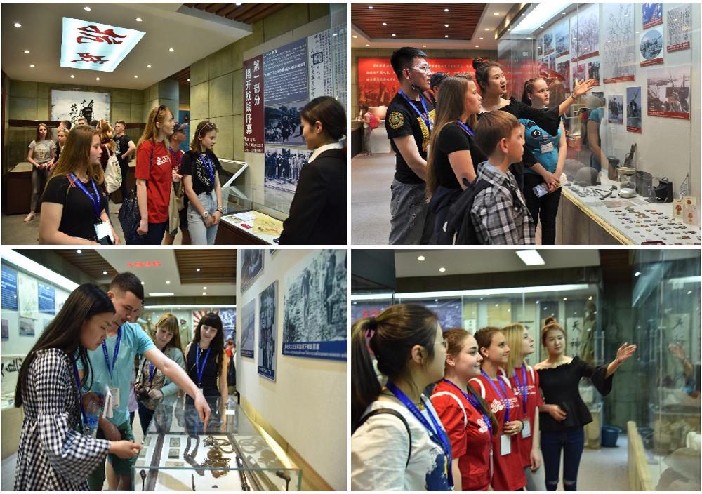 国际青年大会为期五天,分别在布拉戈维申斯克国立师范大学和黑河学院举办一系列形式多样、内容丰富的交流活动。5月16日下午,中俄百余名青年学生参观我校中苏抗战历史纪念馆。一幅幅照片、一件件文物和一处处复原景观,集中展示了苏联红军开赴中国东北战场,同中国军民一道对日作战,共同抗击法西斯侵略的历史。俄罗斯的杰留科娃·尤利娅同学在参观后说:“中俄两国人民在反法西斯战争中相互支持、相互援助、并肩战斗,用鲜血和生命凝成了战斗友谊。作为青年学生,我们要继续传递友谊,做中俄两国和平的使者,为世界和平作贡献。”