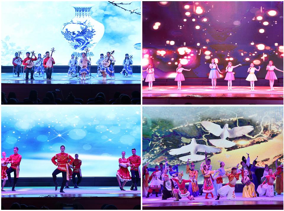 展演在舞蹈《神州欢歌》中拉开序幕。清新悦耳的歌曲《芦花》、竹笛重奏《扬鞭催马运粮忙》、男女声二重唱《美丽的大森林》等节目优美动听,令在场的观众如痴如醉;俄罗斯传统歌舞《欢乐的小山丘》充满异域风情,极富感染力,赢得了观众的阵阵掌声;弹拨乐合奏《青花瓷》委婉优美,感情细腻温柔;合唱《南屏晚钟》轻盈柔美,征服了现场观众。两国师生用艺术展示民族文化,用歌舞传递友好情谊,充分表达了中俄两国人民永做好邻居、好朋友、好伙伴的心声。最后,展演活动在黑河学院校歌的歌声和经久不息的掌声中华彩落幕。