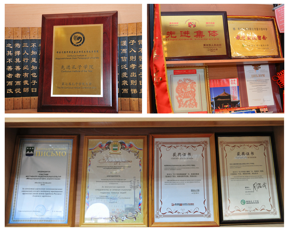 十年来,几代孔院人围绕国家汉办孔子学院总部的工作规划和要求,谋划和推进发展目标的实现,陆续设置布拉戈维申斯克市老年大学、十四中、二十五中、腾达4个汉语教学点,培养汉语学员10240人,举办各类文化宣传活动130余场,参与人数达到10万余人次。卓有成效的汉语教学、文化宣传和中俄文化交流活动得到广泛赞誉,孔子学院已经成为布拉戈维申斯克市民学习汉语的首选,成为俄罗斯人认识和了解中国的一张重要名片。2012年,布拉戈维申斯克国立师范大学孔子学院荣获全球“先进孔子学院”荣誉称号;2016年,俄方院长古哈连科·尼古拉·弗拉基米尔洛维奇获“全球孔子学院先进个人”称号。