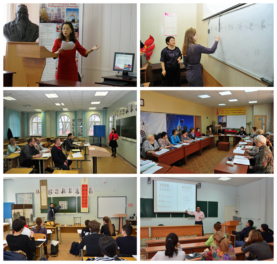 “我们最大的优势和自信是人的优势、制度的优势。”布拉戈维申斯克国立师范大学孔子学院现任中方院长宗成菊如是说。坚持依法管理和规范运行是孔子学院一直秉承的原则。孔子学院规范教学和日常管理,制定教师管理规定、教案和讲稿模板、试卷模板、教学例会等规章制度,设立三类汉语水平考试考点、YCT考试点,积极与非国立教学机构合作,录制网络课程,开设导游培训班,在布师大外语系开设汉语主题文化课,开展本土汉语教师汉语培训、教师培训讲座,在黑河学院建立完整的档案,详尽记录孔子学院的发展历史。同时,孔子学院突出学以致用、多措并举,加强内涵建设、提高教学质量的同时不断扩大办学规模,社会认同度和美誉度不断提升,孔子学院的设立无疑相当于在荒漠中开辟了一块汉语绿地,影响力在俄罗斯远东地区不断扩大,哈巴罗夫斯克等地的教育机构也纷纷来到孔子学院寻求合作。