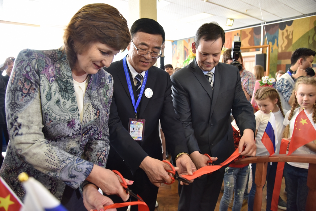 在布拉戈维申斯克市音乐厅,黑河学院党委书记曹百瑛、阿穆尔州副州长奥利亚·维克多耶夫那·雷兴卡,布拉戈维申斯克市副市长斯威特兰娜·维阿切斯拉·沃夫娜,布拉戈维申斯克国立师范大学校长维拉·维塔丽耶夫娜·肖金娜与参加活动的来宾一同为“友谊桥”剪彩。剪彩的“友谊桥”是2019年即将建成的黑龙江大桥的缩小版,举行本次剪彩仪式表达了两所高校师生的真诚期望,希望这座早已在两国人民心中建成的大桥早日落成,进一步促进两国人民多领域的合作交流。
