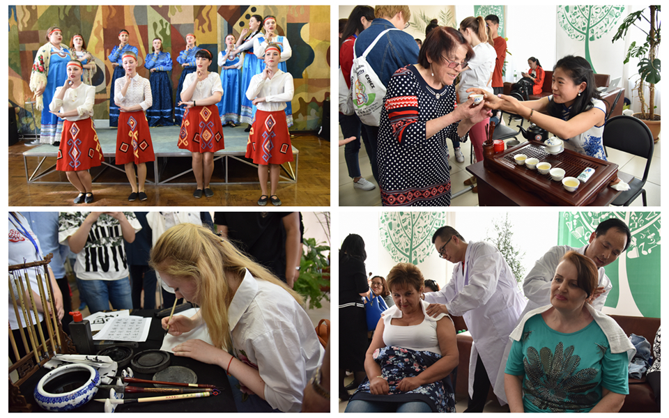 在中俄文化展示活动的中医体验环节,俄罗斯民众对中医产生了浓厚兴趣,细心听取了我校师生讲解中医知识和起居饮食、养生保健的正确方法,并亲身体验了推拿、按摩等健康保健。传统的茶艺展示、多姿的民族舞蹈、神奇的中国剪纸、俄罗斯精湛的针织技艺、悠扬的俄语歌曲……浓厚的文化氛围让在场的观众印象深刻,赞赏不已,现场气氛活跃,其乐融融。