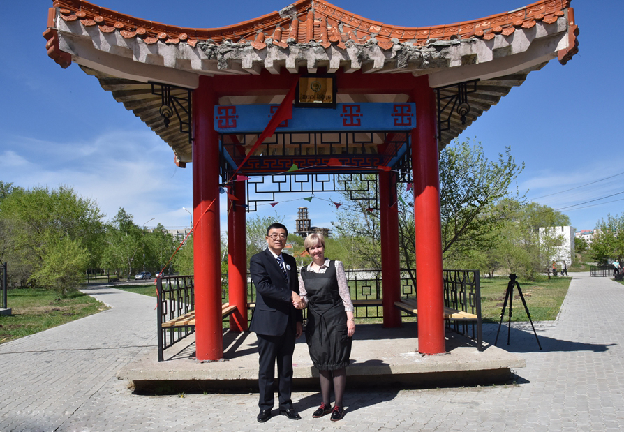 在布拉戈维申斯克市友谊公园,中俄师生共同为以“孔子”命名的文化休闲凉亭揭幕并种植中俄友谊树。该凉亭作为中俄文化交流的又一平台,将不定期举办活动,向市民展示中国风貌,传播中华文化。布拉戈维申斯克国立师范大学外事处长、孔子学院俄方院长古哈连科·尼古拉·弗拉基米尔洛维奇说,孔子学院将继续把汉语教学和传播中华文化作为工作重心,向俄罗斯远东地区的社会各界学习汉语的人士全面开放,从而助力中俄两国在各个领域里的合作。