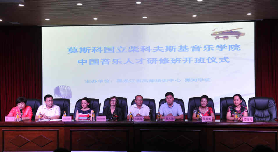 本网讯(记者 赵宇)8月16日,由黑龙江省高师培训中心与我校联合举办的莫斯科国立柴科夫斯基音乐学院中国音乐人才研修基地第一期声乐、钢琴研修班开班式在我校如期举行。柴科夫斯基音乐学院教师伊琳娜・伊格拉耶夫娜、叶卡捷琳娜・伊格列夫娜,黑龙江省高校师资培训中心主任梁大战,学校副校长许海深、党委宣传统战部部长吴春娟、人事处处长吴晓莉、音乐学院院长徐卫及来自哈尔滨师范大学、齐齐哈尔大学、佳木斯大学、牡丹江师范学院、哈尔滨学院、大庆师范学院、绥化学院、哈尔滨音乐学院、黑河学院等14所省内高校的16名参训学员参加开班式。
