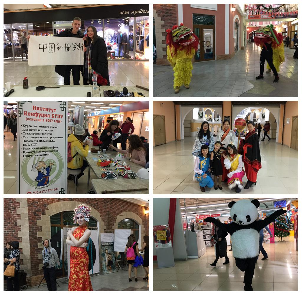 12月16日,在俄罗斯新年来临之际,俄罗斯布拉戈维申斯克市一年一度“文化狂欢节”在贸易中心群岛广场盛大举行,我校与布拉戈维申斯克国立师范大学共建的孔子学院师生在文化狂欢节上,现场展示舞龙、舞狮、迎财神等民俗文化,与近千名俄罗斯市民和中国文化爱好者共同感受喜庆、团圆的中国“年味”。