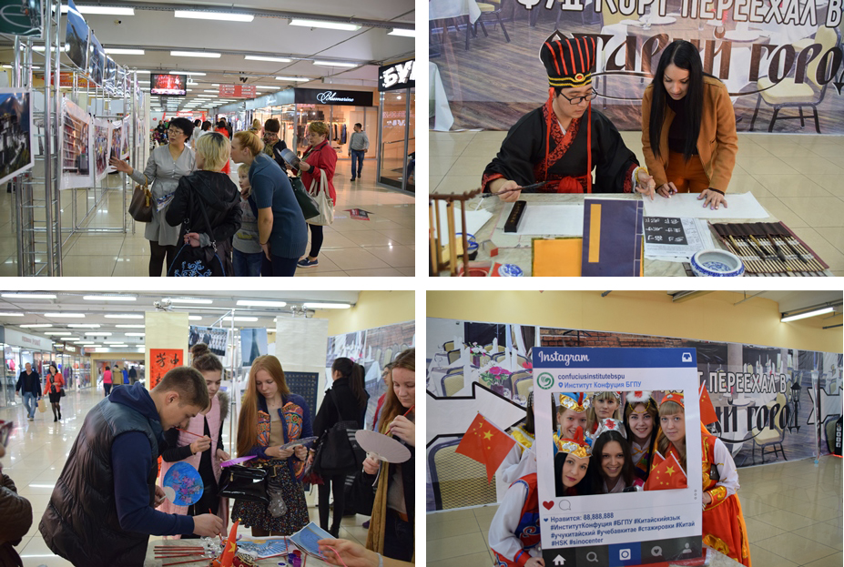 布拉戈维申斯克国立师范大学孔子学院在中华人民共和国国庆节当天开展“全球孔子学院日”纪念活动。新中国成就图片展、中国民族服饰展、中国传统文化展在俄罗斯布拉戈维申斯克市最大的休闲购物中心阿斯特拉瓦推出,吸引了众多俄罗斯市民驻足观看。布拉戈维申斯克国立师范大学孔子学院老师现场介绍新中国成立以来的辉煌成就,与俄罗斯市民共同绘制具有中国特色的画扇,编制“中国结”,俄罗斯市民在浓厚的文化氛围中增进了对中国文化的了解和认知。布拉戈维申斯克国立师范大学孔子学院负责人表示:在国庆节举办庆祝活动,寄托了海外工作者对祖国母亲的深深祝福,祝愿中俄友谊长存。