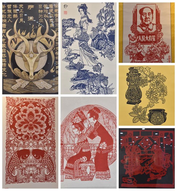 作为巡展的第四站,展出的131件作品包含了黑龙江流域各民族的人生礼俗、岁时节庆、生活生产、吉祥寓意、宗教信仰、龙江风情等内容。其中《四季风情花鸟》系列剪纸贴画情趣丛生、活灵活现;《东北十八怪》系列剪纸贴画体现生活、生动活泼;《满族婚俗》系列剪纸贴画形象生动、妙“剪”生花;《古代四大美女》系列剪纸贴画体态妖娆、吸人眼球……一幅幅形象逼真、惟妙惟肖的画作,吸引了前来参观人员的目光,引得大家赞叹拍照。
